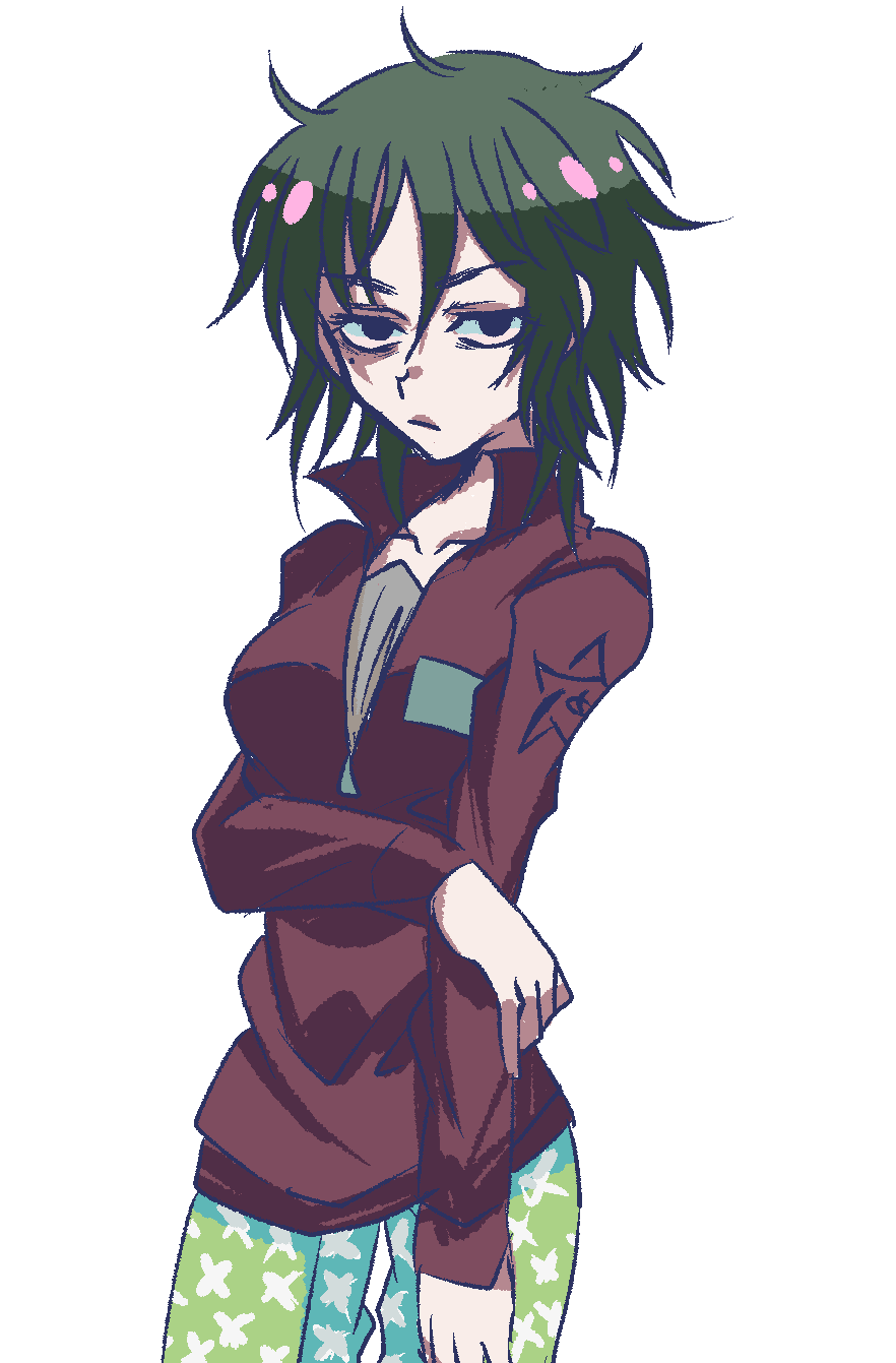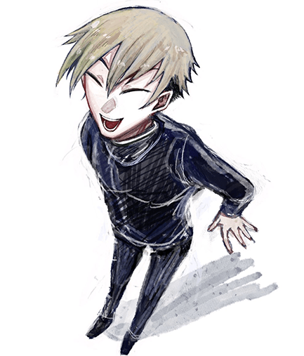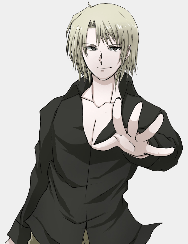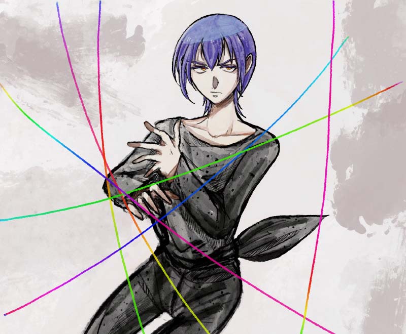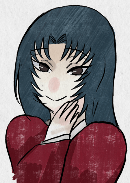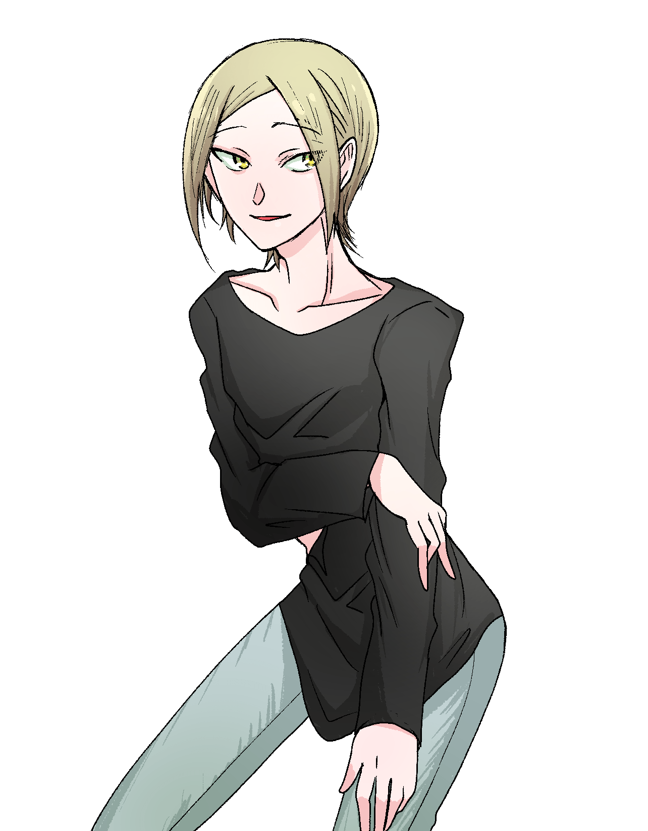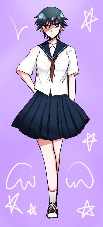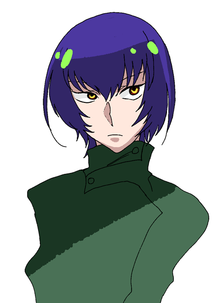 目つきが悪いので、気にして隠している。前髪で視界を覆っているため、視力が微妙に低下しており、それが目つきの悪さに拍車をかけている。クソ真面目。