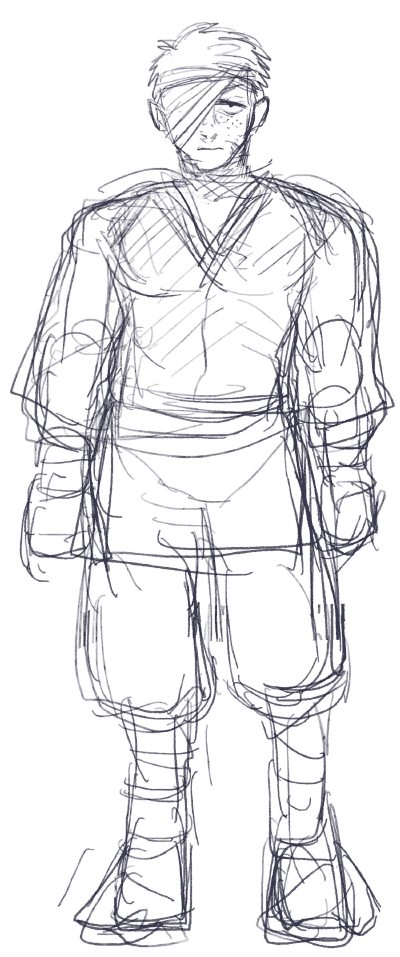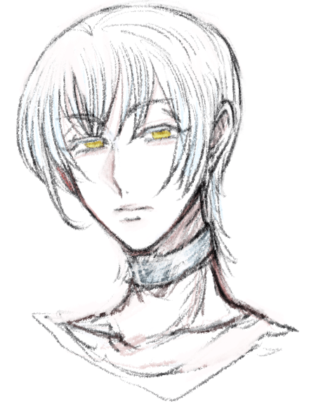 焼かれた村の生き残り。助けられたのは隠れてひもじく怯えていたところを、近くの町が雇った傭兵に助け上げられたため。その後行商のキャラバンへ預けられ下働きをしていたが、また魔物へ襲われ、同じ傭兵に助けられる。その助けもやや遅く、彼はまた拠り所を失った。